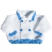 Tutto con il punto chicco riso impreziosito dal bordo della giacchina, delle maniche e del colletto azzurro mentre il resto è un bianco latte.